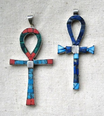 ANKH - símbolo da vida - prata e pedras.(10 cm. alt.)